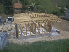 Cégünk észak-amerikai technológiával helyszínen összeállított favázszekezetű házakat kínál, melyek a rendkívüli külső formagazdaság és kiváló hőszigetelési paraméterek mellett páratlan belső térkialakítást tesznek lehetővé. Hagyományosnál vékonyabb falszerkezet ellenére (32,2cm!), jobb hőszigetelő tulajdonság.